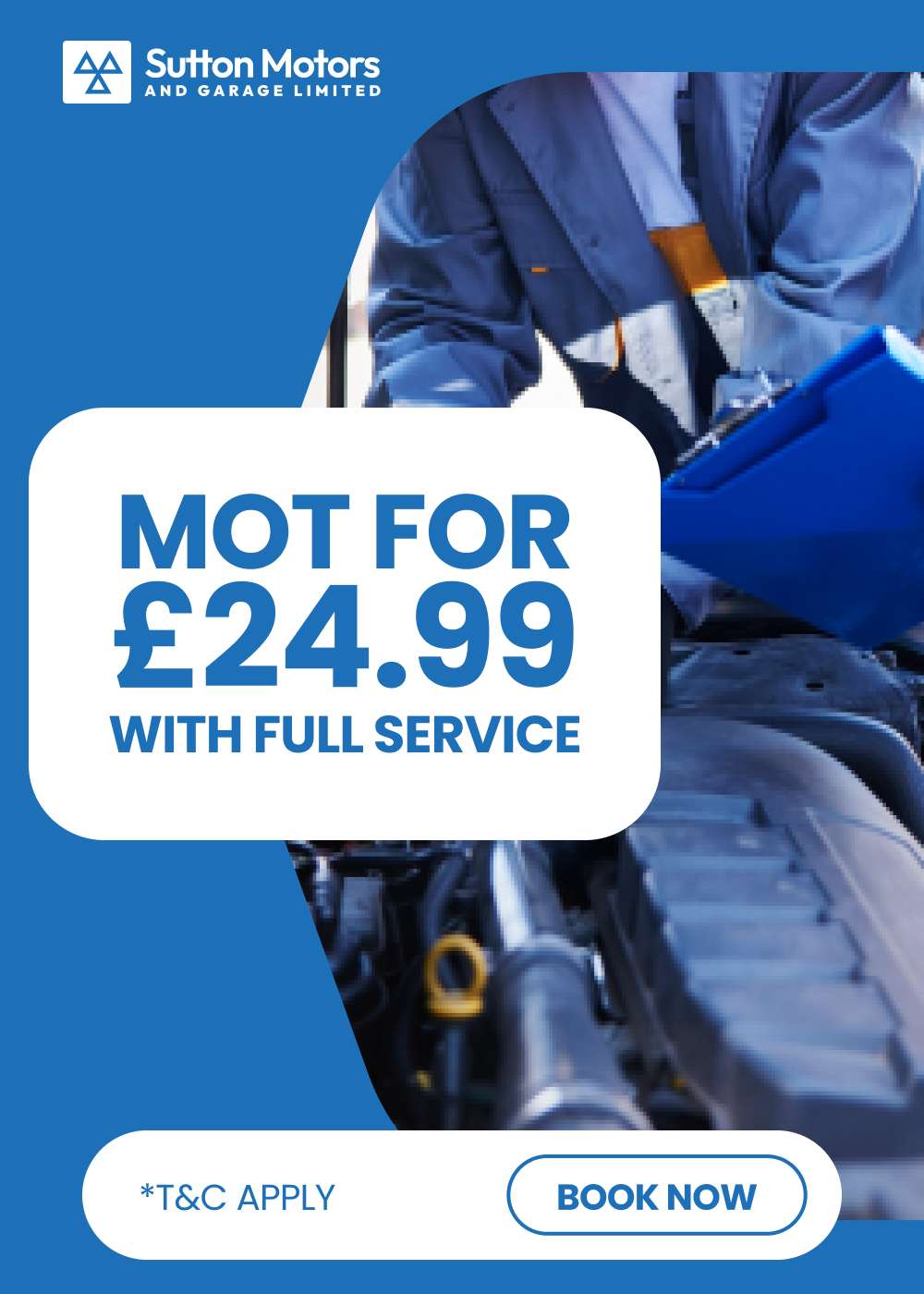 At Sutton Motors, we make it easy to keep your car in top shape. Whether you need a same-day MOT, quick tyre fitting, or reliable car repairs, our friendly team is ready to help. MOT tests start from just £14.99, with fast turnaround times and no hidden costs. We use genuine parts, modern diagnostics, and trained technicians to make sure every job is done right.
