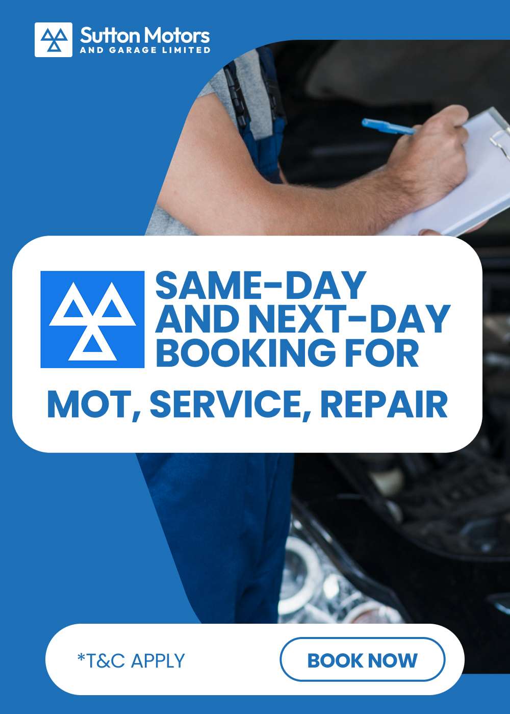 Don’t wait around. Get your MOT done the very same day with our quick booking and expert testing service.
